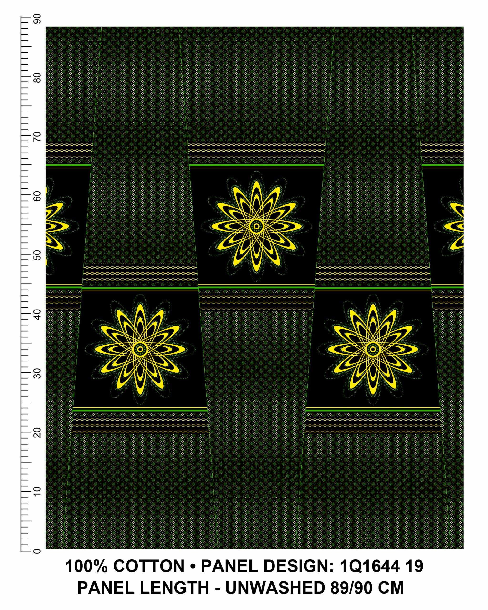 Categories: FABRIC, THREE CATS SHWESHWE PANELS BY DA GAMA, PANELS COLOUR 19 GREEN - GOLD & BLACK
