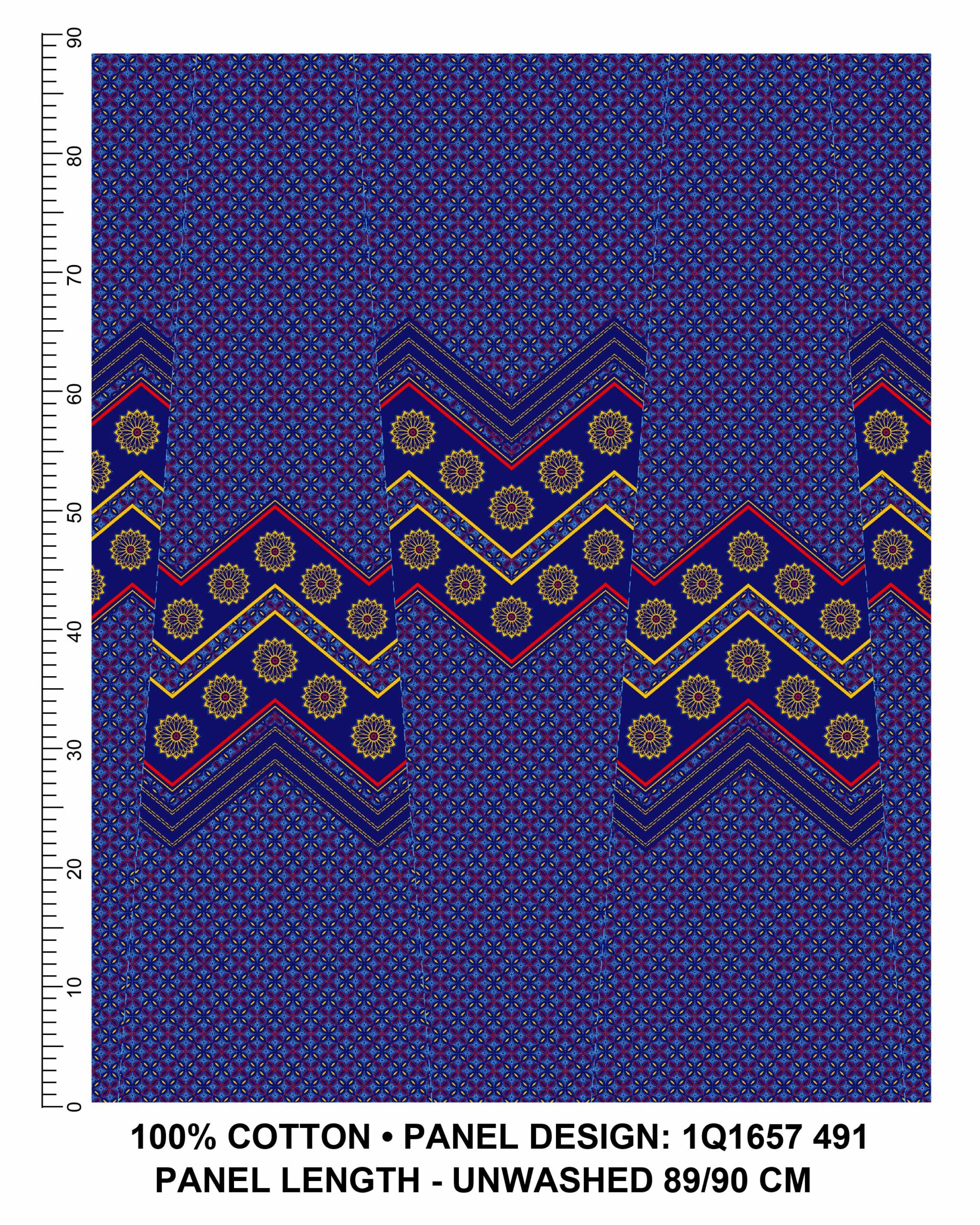 THREE CATS CW491 BLUE – GOLD,ORANGE & TURQ SHWESHWE PANELS Q1657 491