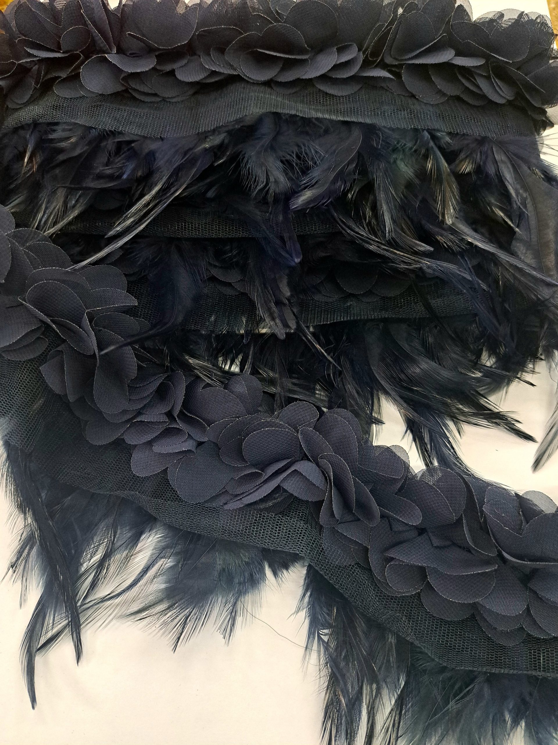 FANCY FEATHER & FLOWER TRIMMING – NAVY