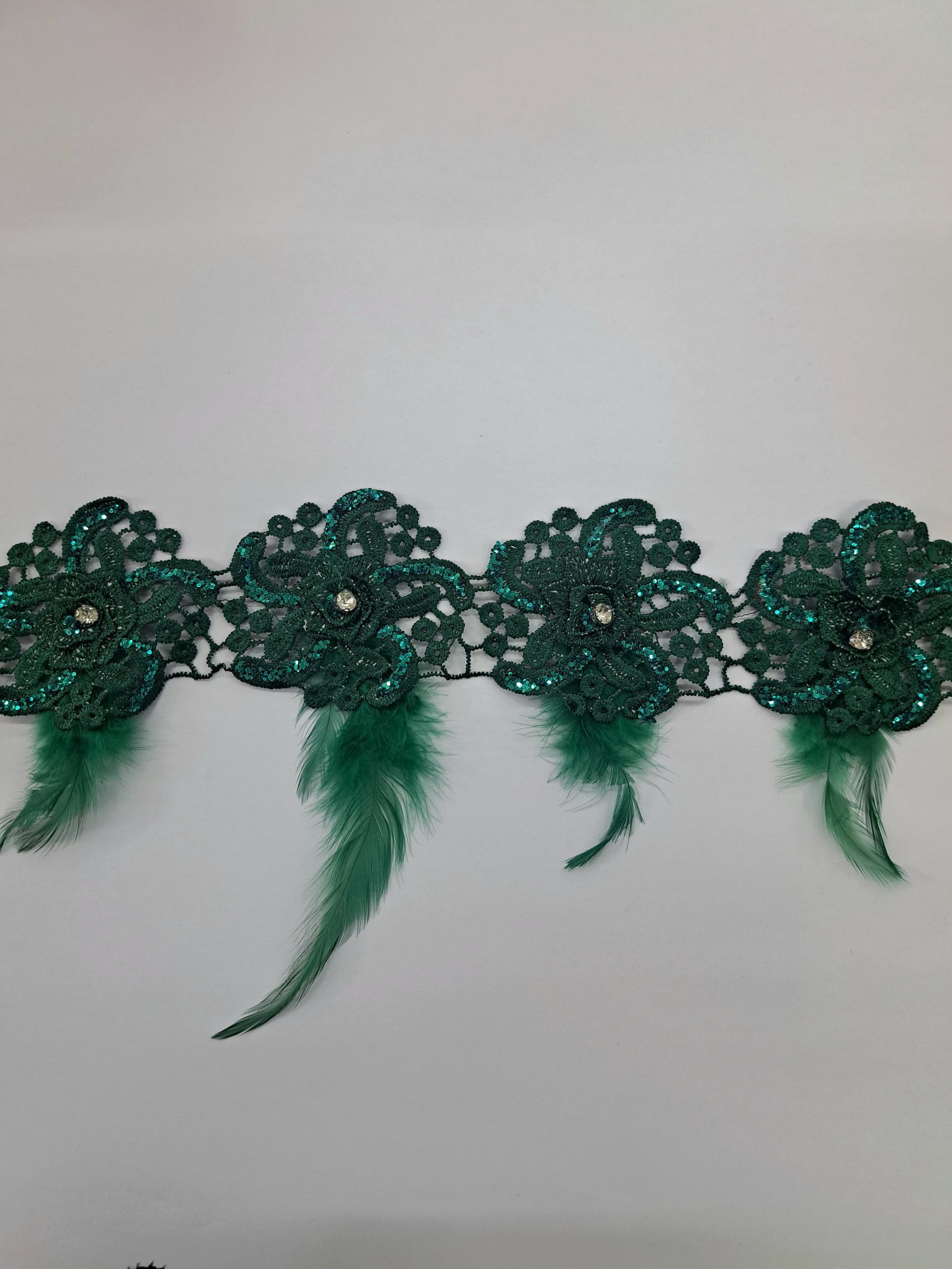FANCY LACE & FEATHER TRIMMING – GREEN