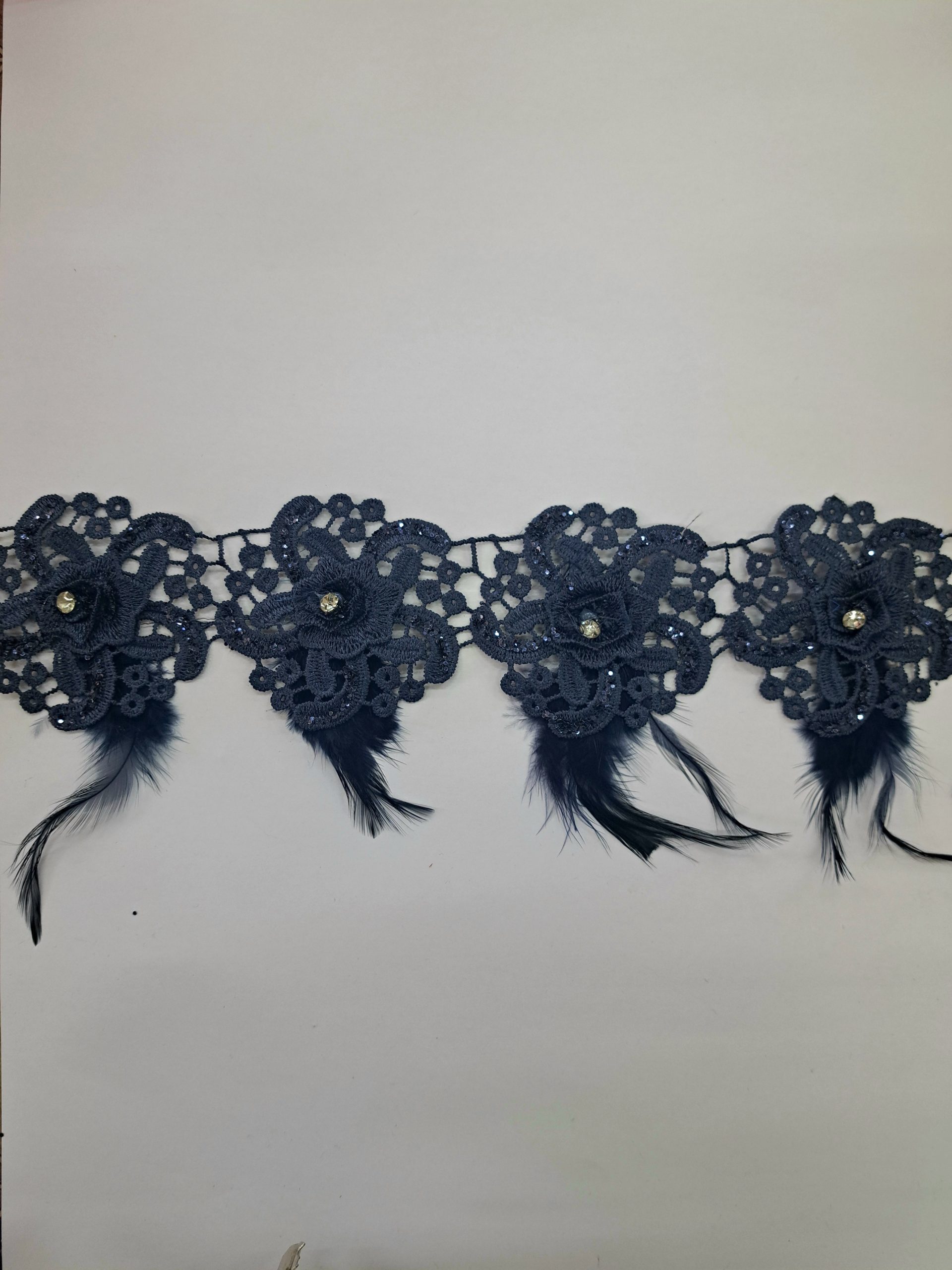 FANCY LACE & FEATHER TRIMMING – NAVY