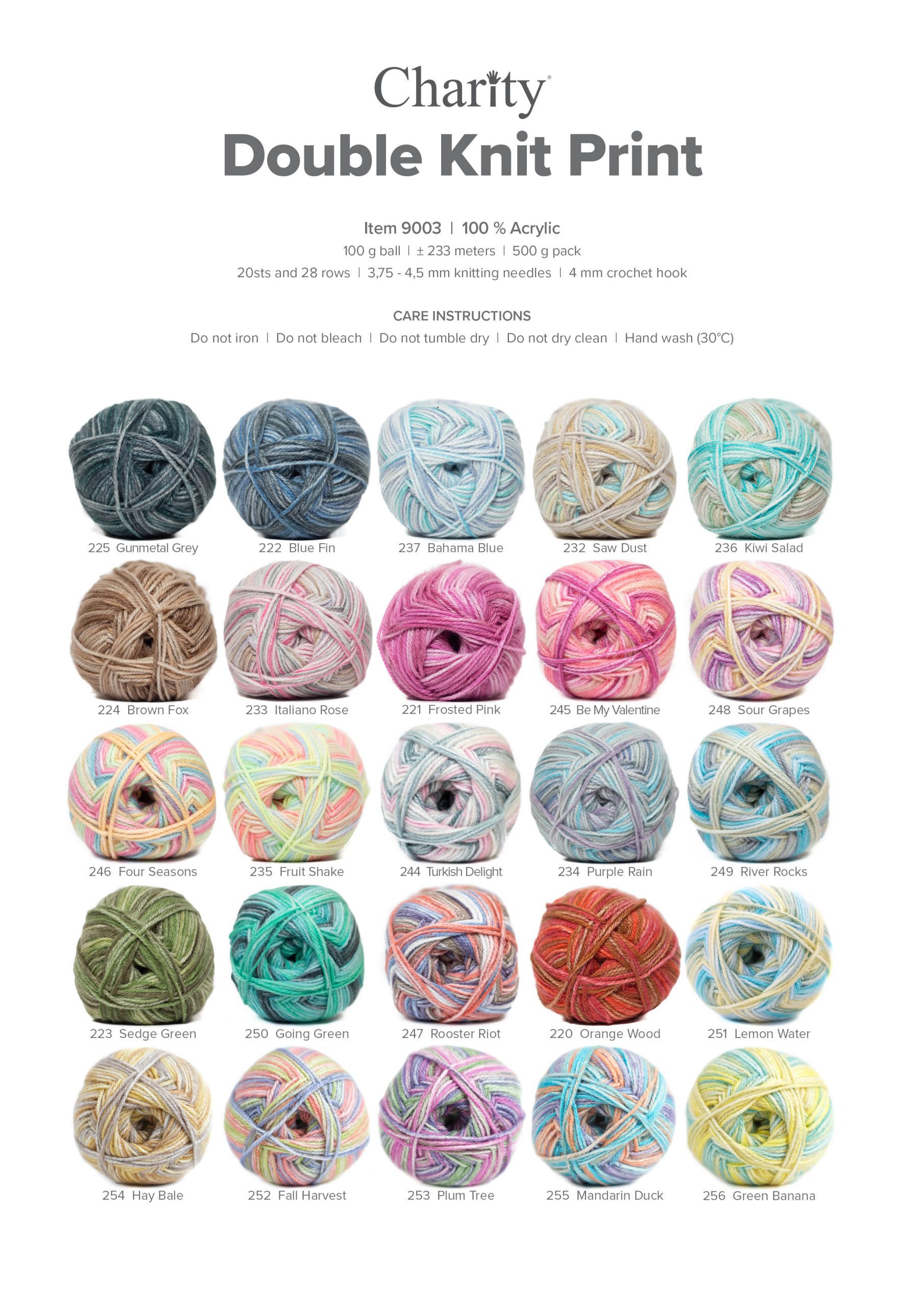 Categories: WOOL, ELLE YARNS RANGE, CHARITY COLLECTION, CHARITY DOUBLE KNIT PRINTED